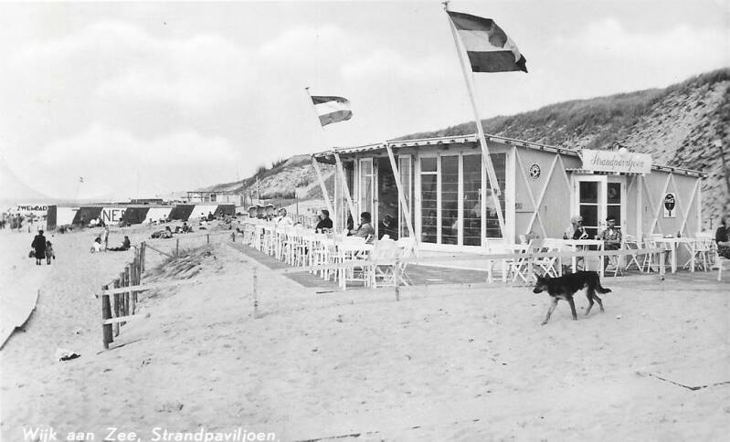 Er onder het strand paviljoen de instuif anno 1960 daarnaast badkoetsen die de badgasten van en naar het strand brachten vanaf het badhotel op de hoek van de zwaastraat en gasthuisstraat gebouwd anno 1885 door Heinrich Tappenbeck
