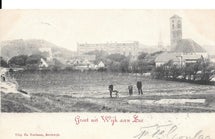 Een kaart uit 1900 vanaf de julianaweg met zicht op de kerk, afgestempeld in 13 augustus 1900 en verstuurd naar de rokin in Amsterdam