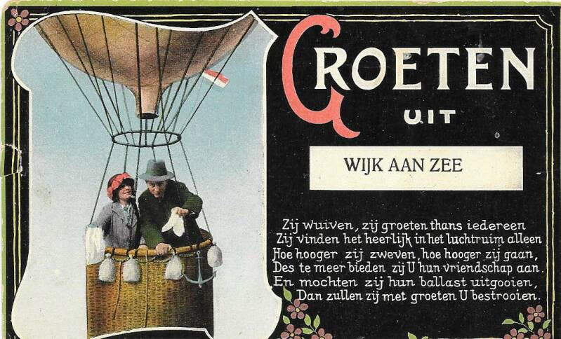 Hier een kaart uit 1925 met de groeten vanuit een vliegtuigje en daarnaast een groet vanuit een luchtballon