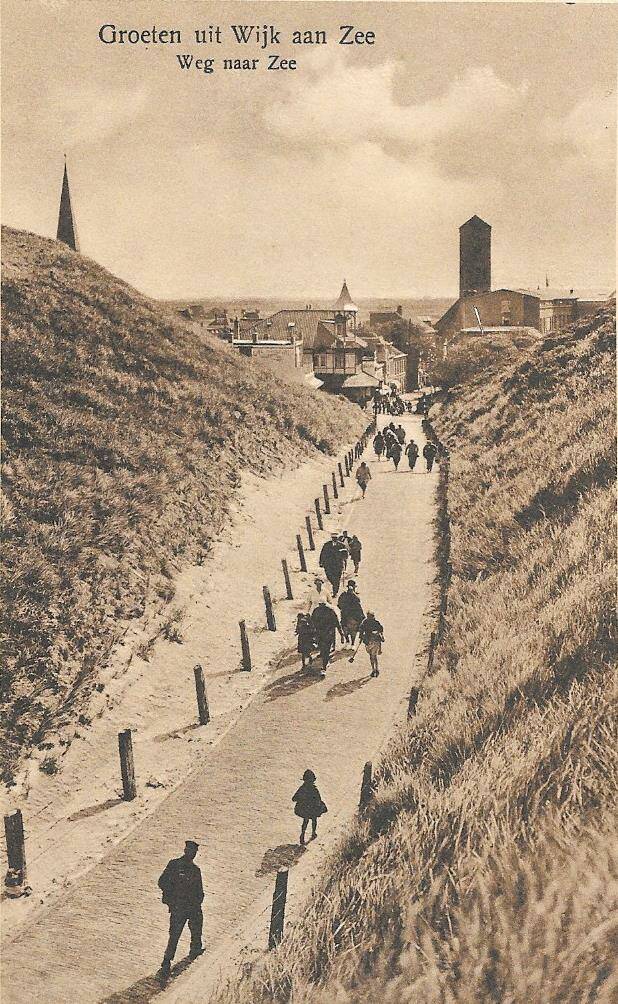 Rechts ziet u een foto uit 1910 met rechts boven het gastenverblijf behorende bij het Badhotel in de Zwaanstraat waar bij men via het pas omhoog liep.